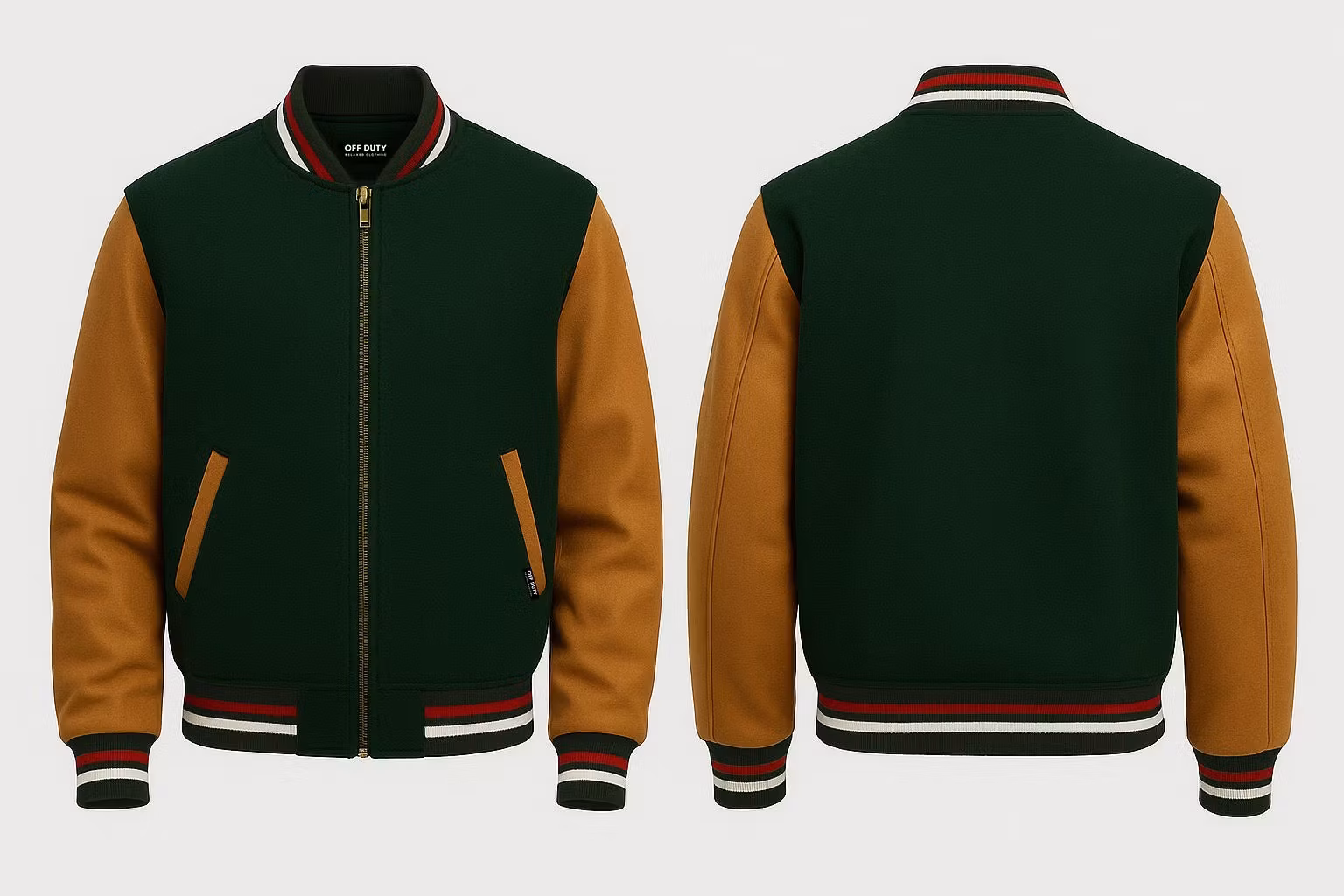 The Nice One, en premium Varsityjacka som följer modet. Tillverkad i äkta skinn på arm samt ullblandning på kropp, skön tyngd och perfekt passform.